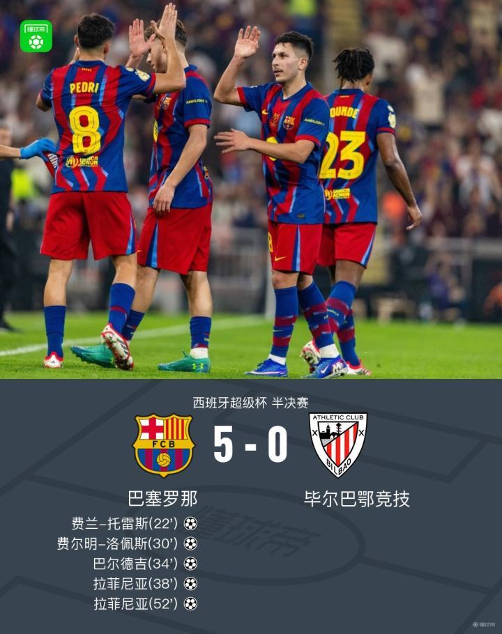 5-0大胜毕包,巴萨创西超杯历史最大分差赢球纪录