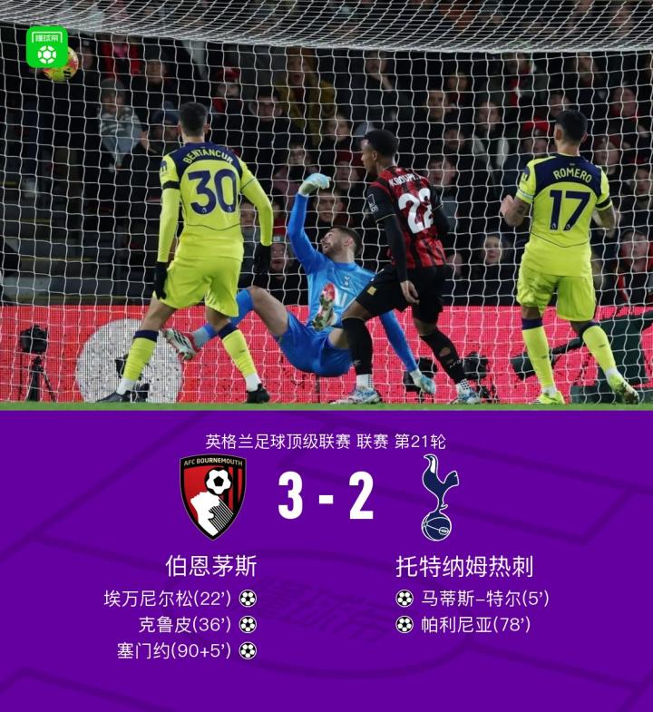 久违的胜利,伯恩茅斯战胜热刺终结连续11轮英超比赛未胜