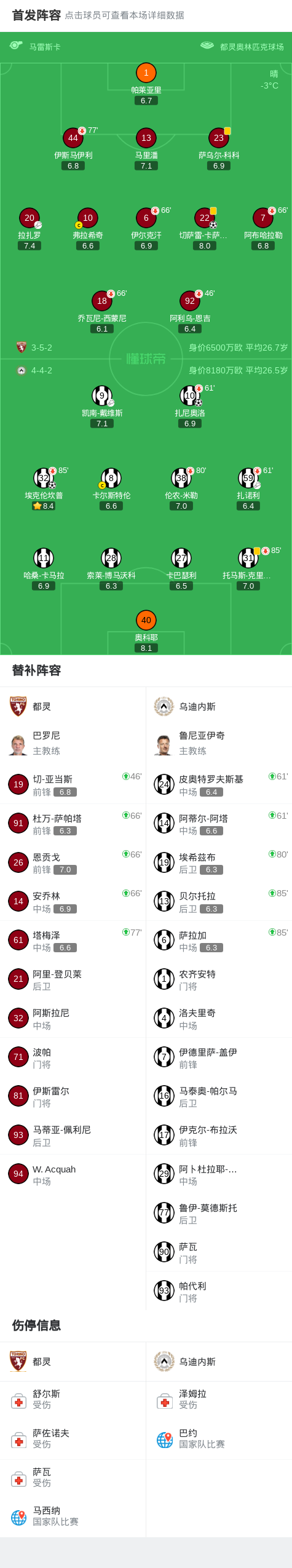 01-08 07:38半场战报:都灵0-0乌迪内斯