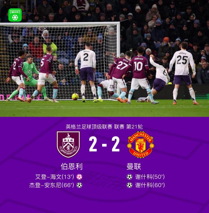 扫描下载懂球帝首页>动态> 剑南春|曼联客场2-2伯恩利遭三连平,谢什科双响,海文乌龙