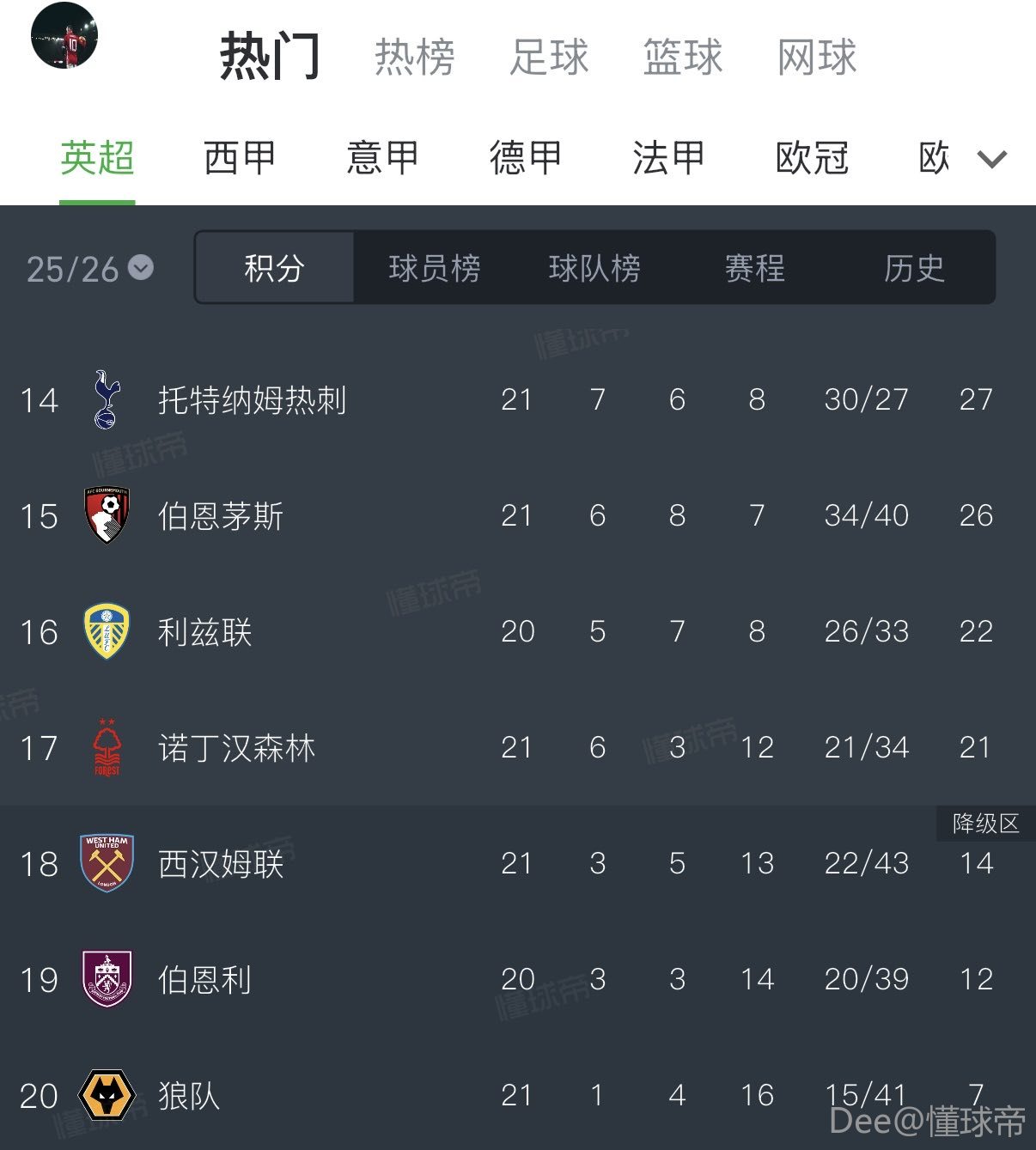 非常公平给每支下半区球队各送一分