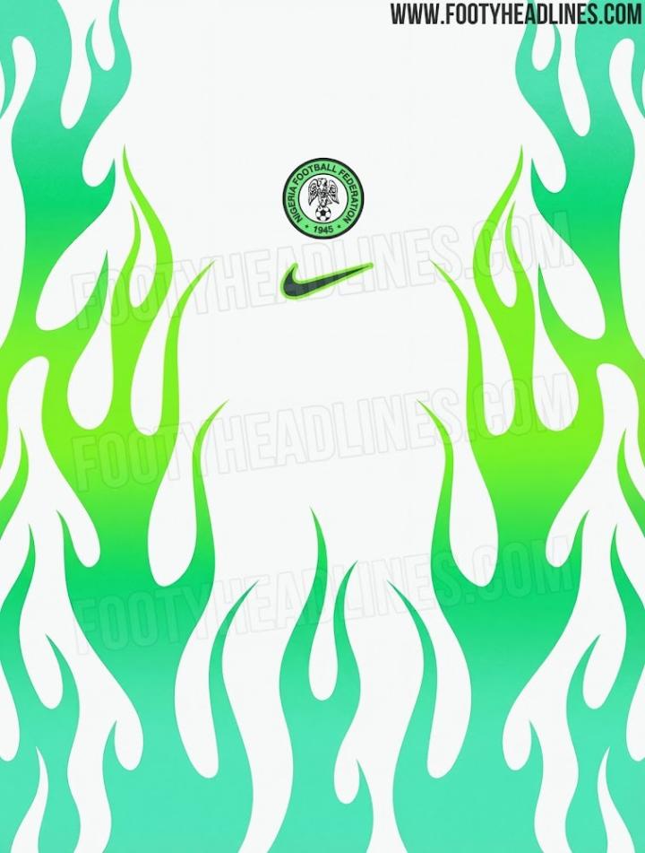 而根据此前曝光,尼日利亚2026年客场球衣大概率以白色为基底,搭配亮绿色的火焰状图案,整体风格大胆前卫,极具辨识度。火焰纹理在球衣表面铺展开来,营造出强烈的速度感与能量感。