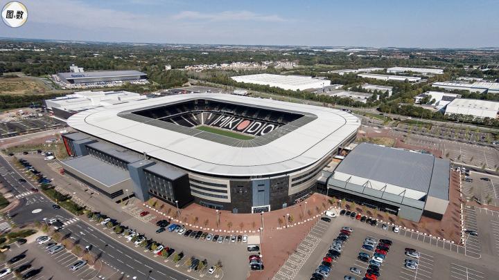 英乙最大的赛场是米尔顿凯恩斯登斯(Milton Keynes Dons)的MK球场(Stadium MK, 容量为30500人),米尔顿凯恩斯登斯由南伦敦的温布尔登搬迁至米尔顿凯恩斯市,“登斯”之名意在致敬原先的温布尔登传统,温布尔登的球迷则另建了AFC温布尔登(现为英甲球队)。