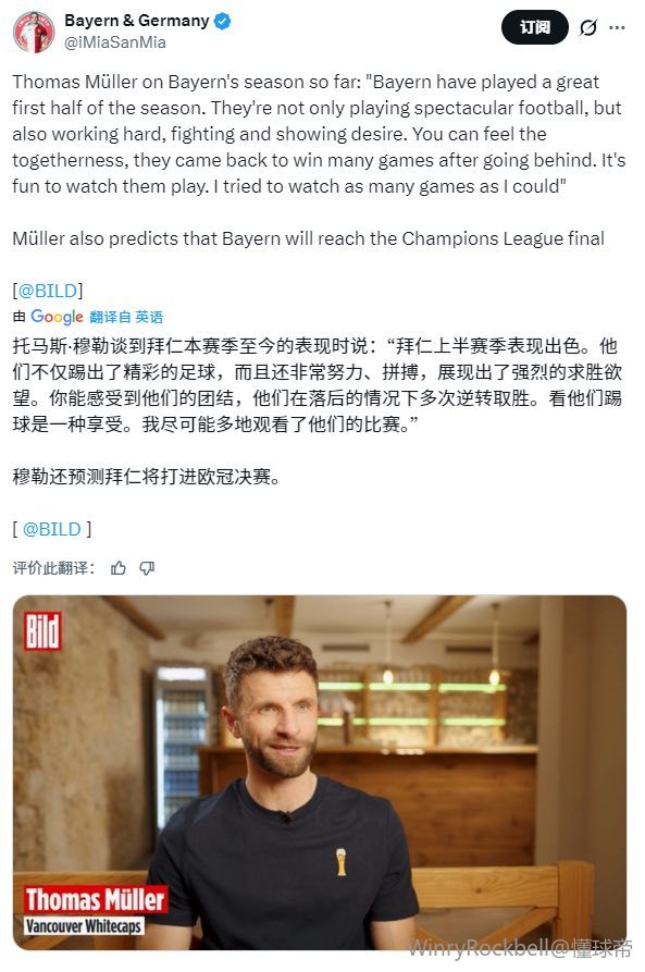 少了一句,穆勒还预测了拜仁会进入欧冠决赛