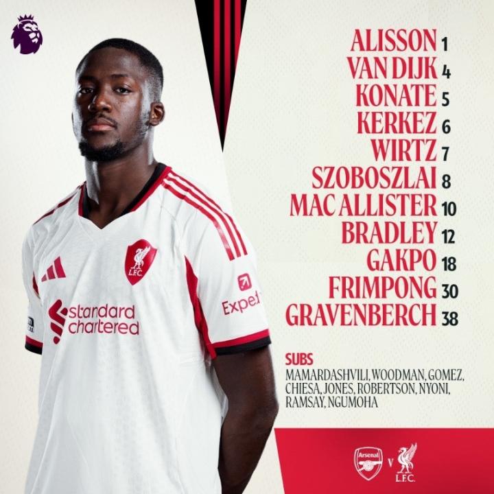 扫描下载懂球帝首页>动态> 阿森纳vs利物浦:哲凯赖什、厄德高首发,维尔茨、加克波出战