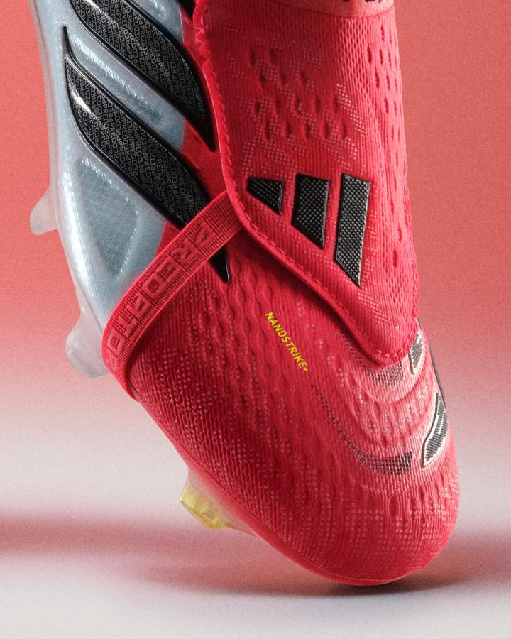 为了适配现代球员日益严苛的竞技需求,新一代PREDATOR完成全方位的科技升级。焕新NANOSTRIKE+ 网眼鞋面采用柔性涂层设计,搭配嵌入式防滑摩擦条,为控球提供稳定支撑,助力球员实现“人球合一”的击球体验。标志性的FOLD-OVER TONGUE 翻折鞋舌缔造平顺击球区,适配多样出击角度;STRIKEFRAME 大底侧重抓地表现,助力稳健步伐;重磅回归的POWER SPINE 强化脊则为中足提供有力支撑,帮助球员在远距离射门或大力传球时聚能发力,精准命中目标。
