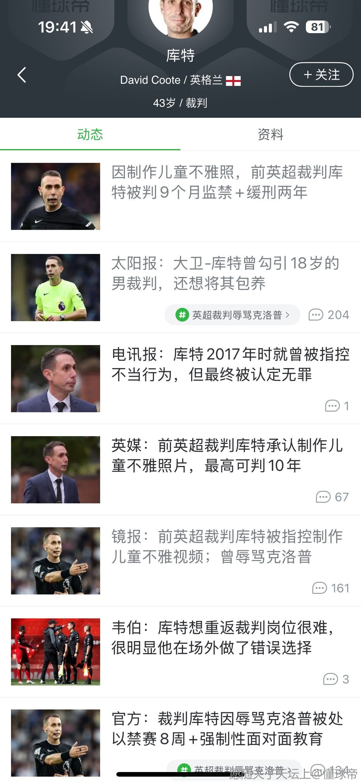 根据The Athletic的最新报道,英超前裁判大卫-库特因制作儿童不雅视频被判9个月监禁,缓刑两年。