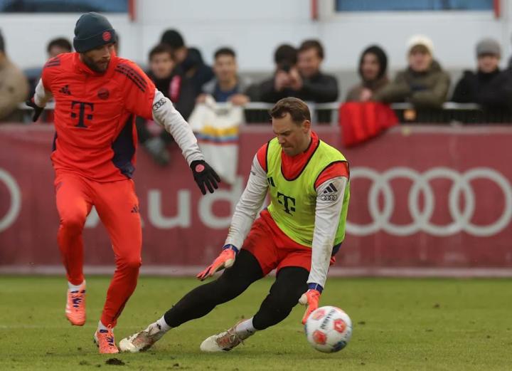 扫描下载懂球帝首页>动态> 图片报:诺伊尔已完整参加训练,周日将首发出战狼堡
