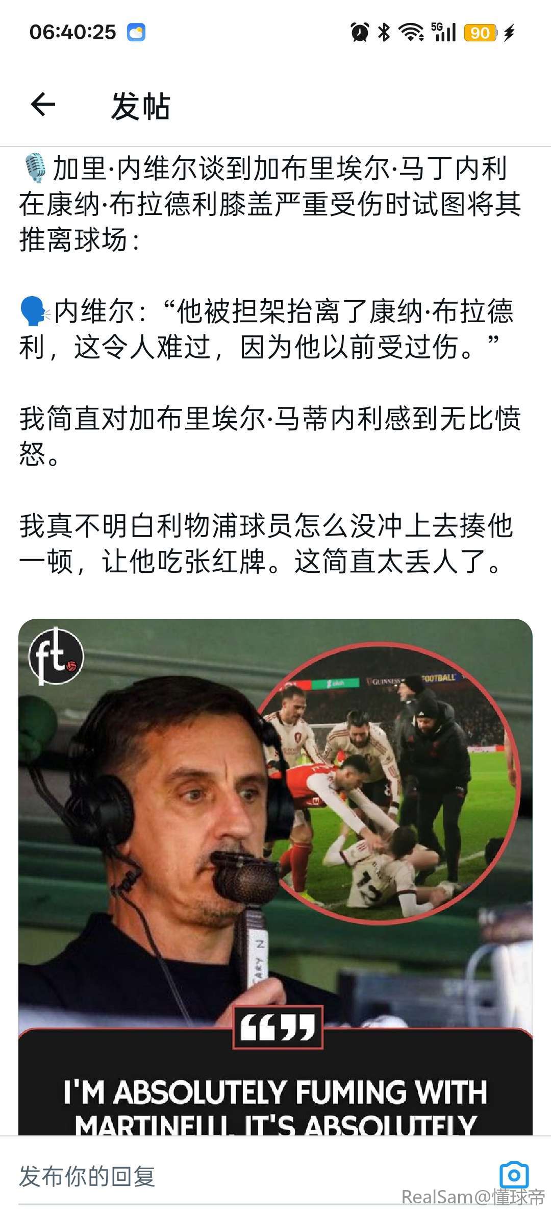 01-09 16:37内维尔批马丁内利:很惊讶利物浦球员没冲过去狠狠揍他