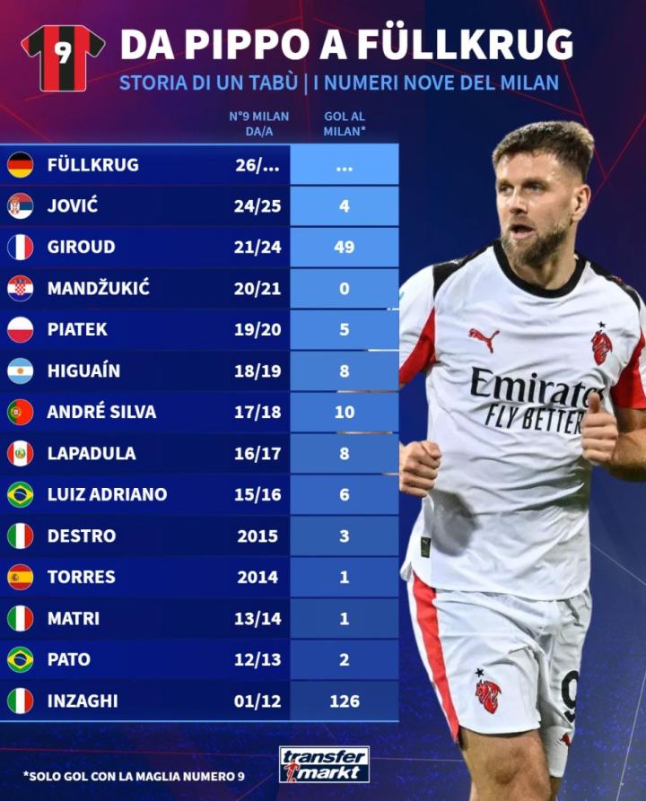 扫描下载懂球帝首页>动态> 德转列因扎吉至今米兰历任9号进球数:仅吉鲁一人打进超过10球