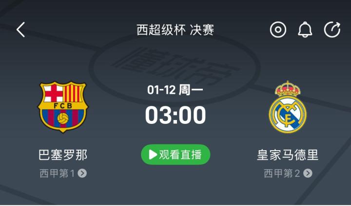 01-09 18:02西超杯皇马2-1马竞晋级决赛,巴尔韦德世界波,罗德里戈破门