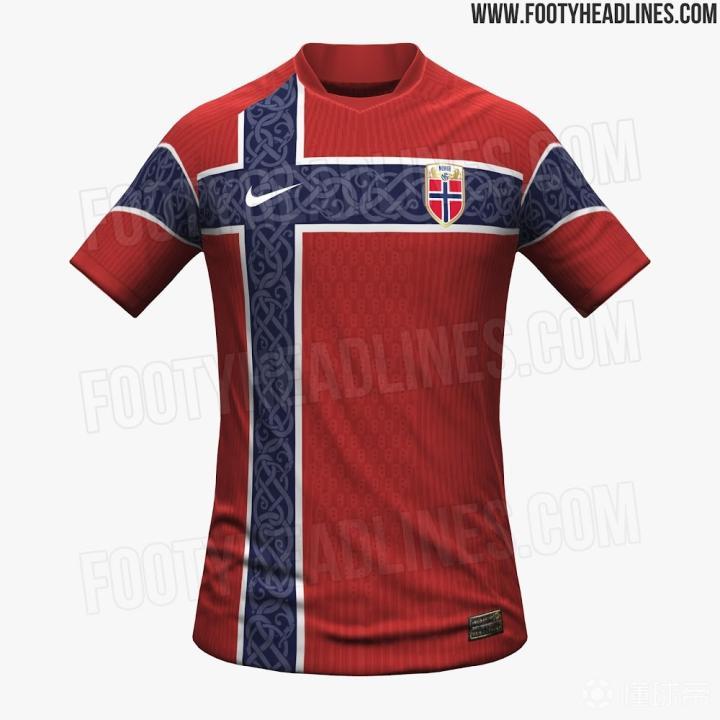近日,知名装备网站FootyHeadlines曝光了挪威2026美加墨世界杯主场球衣谍照。这款球衣的主体设计致敬了挪威国旗,并融入了当地传统纹样。