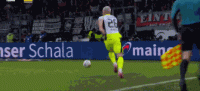 法兰克福制造点球的界外球疑似违例了,掷球的时候脚进线了