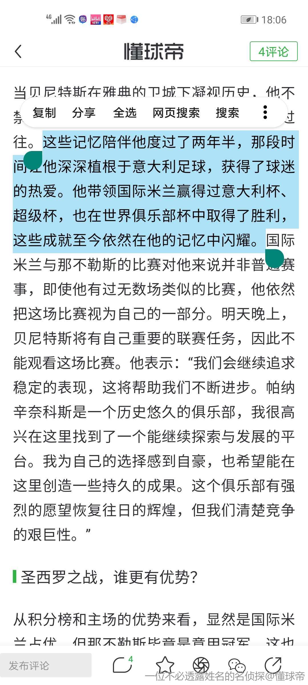 当贝尼特斯在雅典的卫城下凝视历史,他不禁回顾起自己与国际米兰和那不勒斯的过往。这些记忆陪伴他度过了两年半,那段时间让他深深植根于意大利足球,获得了球迷的热爱。他带领国际米兰赢得过意大利杯、超级杯,也在世界俱乐部杯中取得了胜利,这些成就至今依然在他的记忆中闪耀。国际米兰与那不勒斯的比赛对他来说并非普通赛事,即使他有过无数场类似的比赛,他依然把这场比赛视为自己的一部分。明天晚上,贝尼特斯将有自己重要的联赛任务,因此不能观看这场比赛。他表示:“我们会继续追求稳定的表现,这将帮助我们不断进步。帕纳辛奈科斯是一个历史悠久的俱乐部,我很高兴在这里找到了一个能继续探索与发展的平台。我为自己的选择感到自豪,也希望能在这里创造一些持久的成果。这个俱乐部有强烈的愿望恢复往日的辉煌,但我们清楚竞争的艰巨性。”