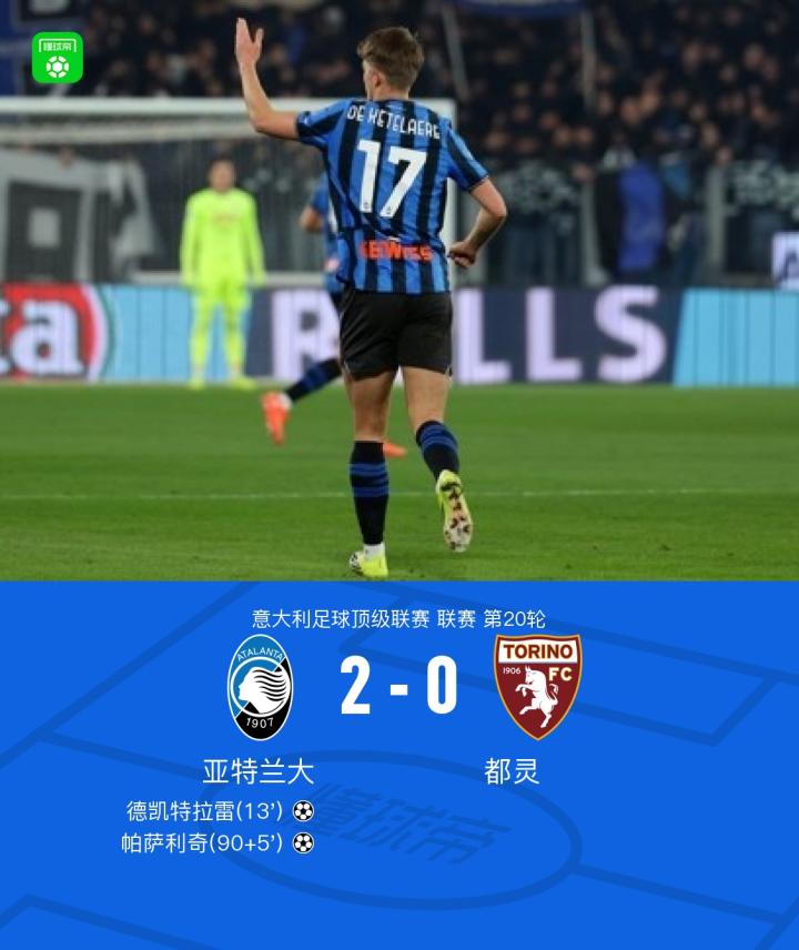 扫描下载懂球帝首页>动态> 亚特兰大2-0都灵,德凯特拉雷破门,帕萨利奇建功