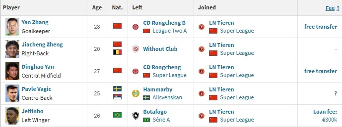 01-11 15:56加盟铁人,热菲尼奥450万欧元身价成为中超身价最高的球员