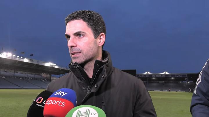 率队在英格兰足总杯第三轮客场4-1大胜朴茨茅斯之后,阿森纳主教练阿尔特塔在场边就地出席了新闻发布会。