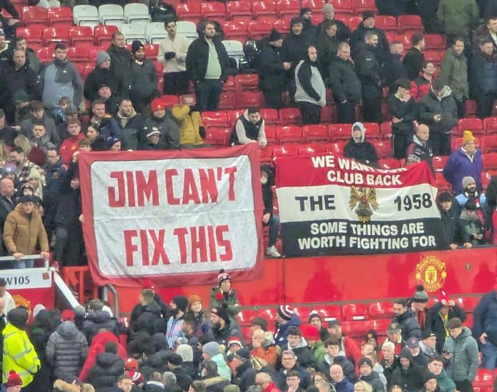 扫描下载懂球帝首页>动态> 足总杯被淘汰,现场曼联球迷打出横幅:吉姆解决不了这个问题