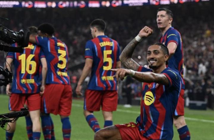 西超杯巴萨3-2皇马夺冠,拉菲尼亚双响,维尼修斯一条龙破门