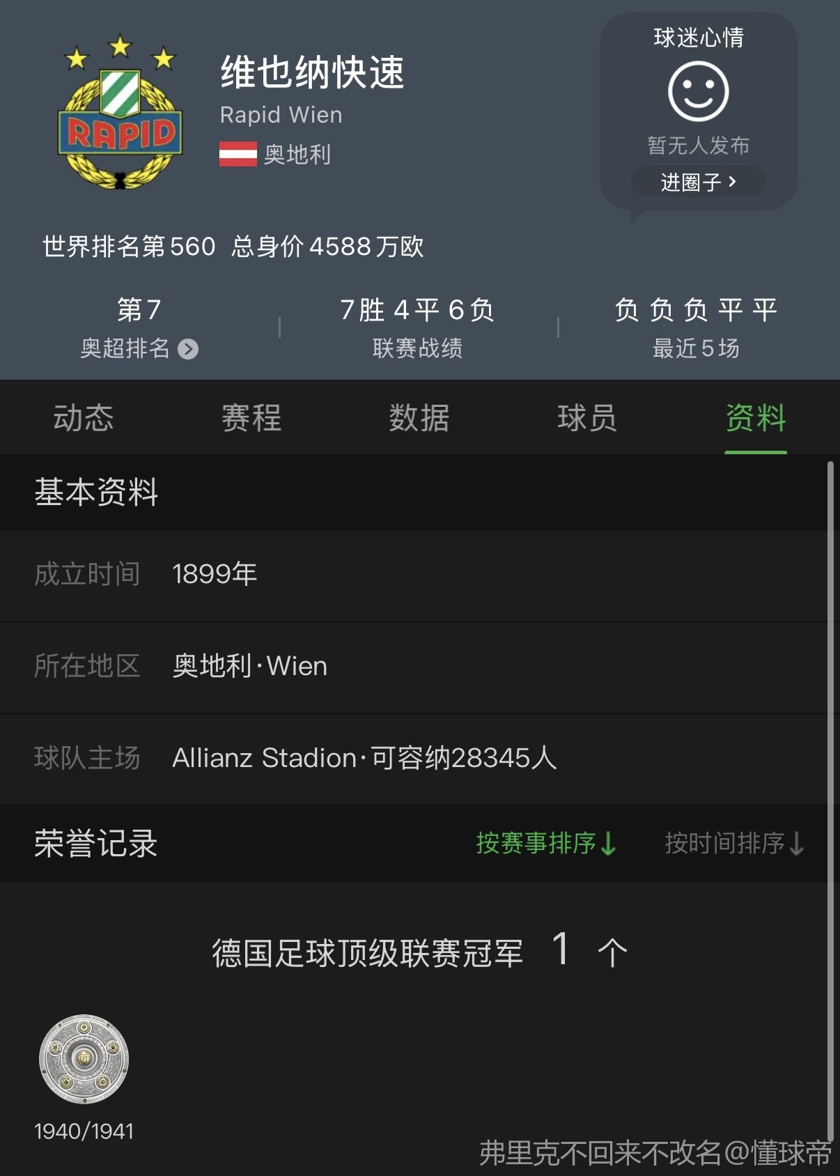 怀念啊,那个时候我还是德甲冠军粉,喜欢上了维也纳快速