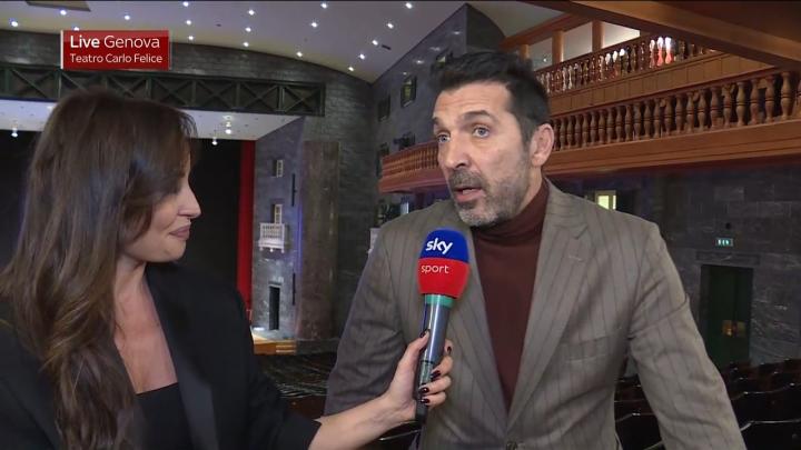 意大利国家队领队布冯参加了在热那亚举行的“冠军剧院”活动,并接受了来自意大利天空体育的采访。