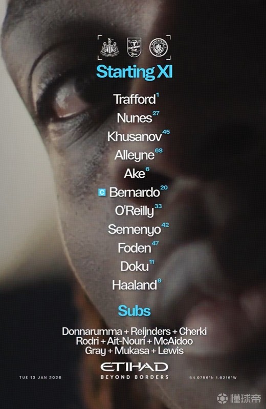 扫描下载懂球帝首页>动态> 曼城客战纽卡:哈兰德、塞门约、特拉福德首发,维萨出战