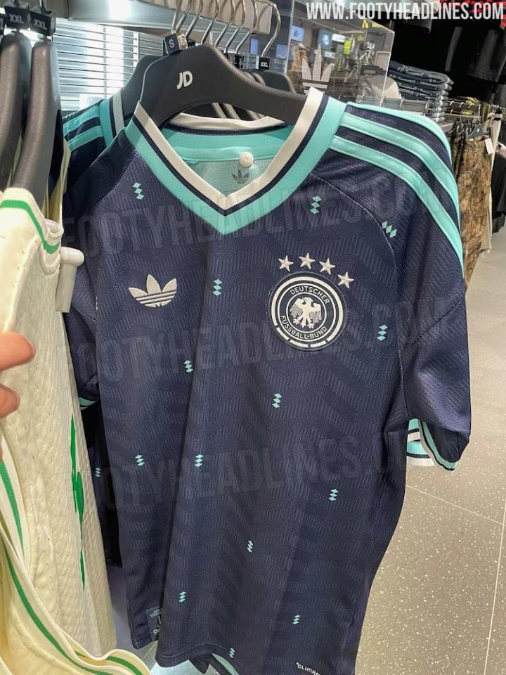 根据知名球衣装备网站Footy Headlines的最新报道,德国队2026年世界杯客场球衣已在部分零售商店上架销售。