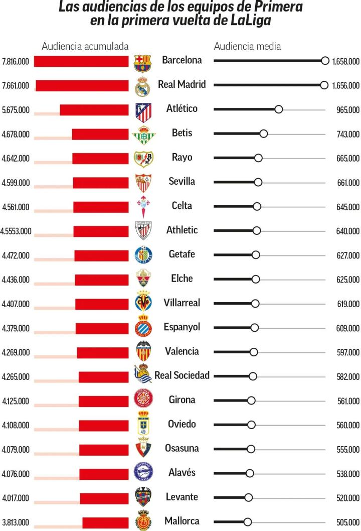 扫描下载懂球帝首页>动态> 马卡列西甲上半程收视率:巴萨场均吸引165万观众位列第一