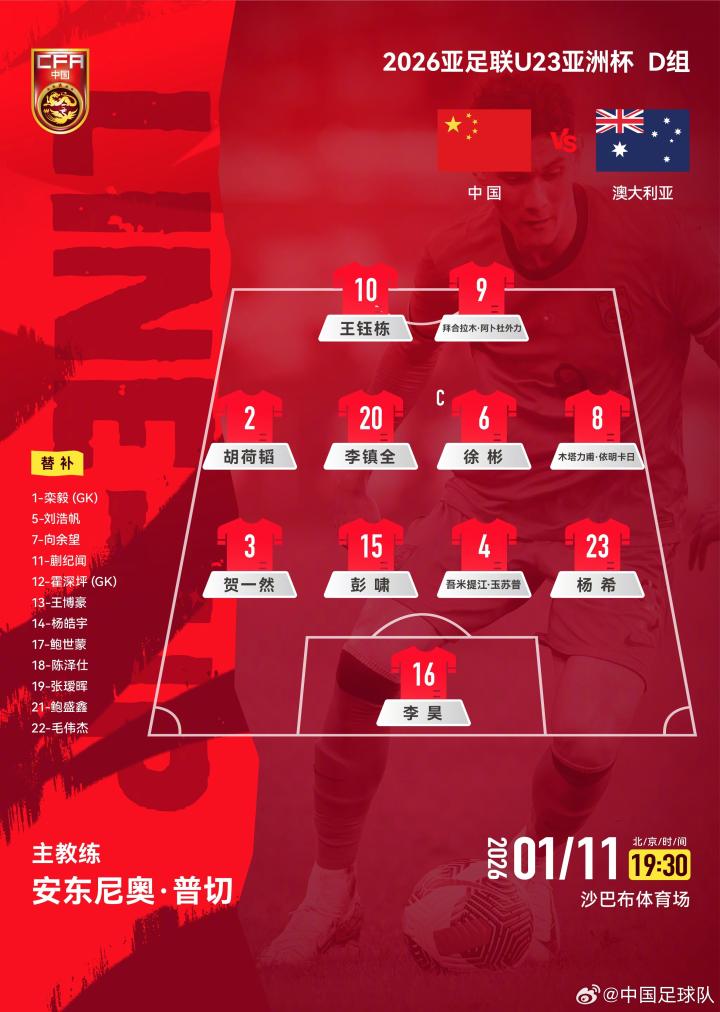 01-14 18:54U23国足vs泰国U23:王钰栋先发,蒯纪闻、杨皓宇出战