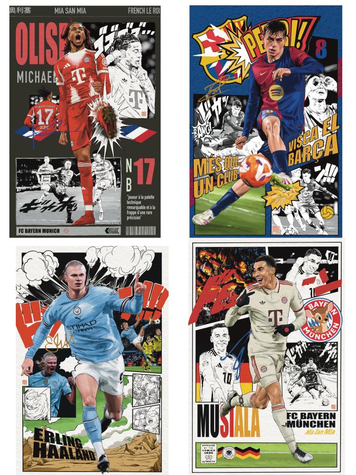 25年的我画了很多皇马之外的球员,从最初专供我团到现在的吃“百家饭”,其实初心没变,我始终都在不断尝试用一幅画的小小篇幅讲述这个球星的传奇故事。从梅西到马队,从罗贝里到德罗巴,不同球队,不同球星的不同传奇故事,给了我丰富的创作灵感,不断刺激我尝试更多的风格和画风。