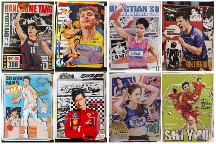 这一年,成为国内知名杂志《看天下》的签约插画师,绘制扉页的“进取之心”板块,画了更多足球之外的知名人物,苏炳添,樊振东,石宇奇,杨瀚森,杜普兰蒂斯,周冠宇,武飞…不同领域的不同人物,拓展了我绘画内容的边界。
