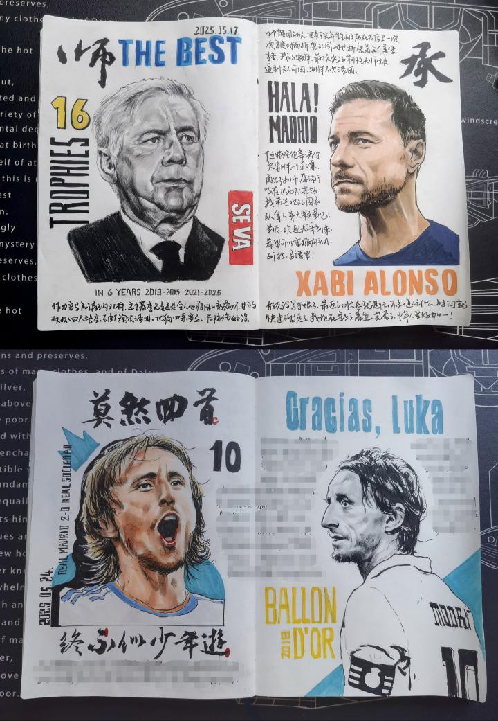 不过,25年的皇马球迷手帐回看了一下居然只做了两期,一期是安胖卸任,龙哥走马上任(结果昨天龙哥下课)很恍惚,就如同我团这个赛季的迷茫。另一期是送别莫妈,说实话自从典礼阵容那一批球员逐渐离队后,很少熬夜看比赛了,因为确实不年轻了,熬个大夜需要一两天才能恢复。