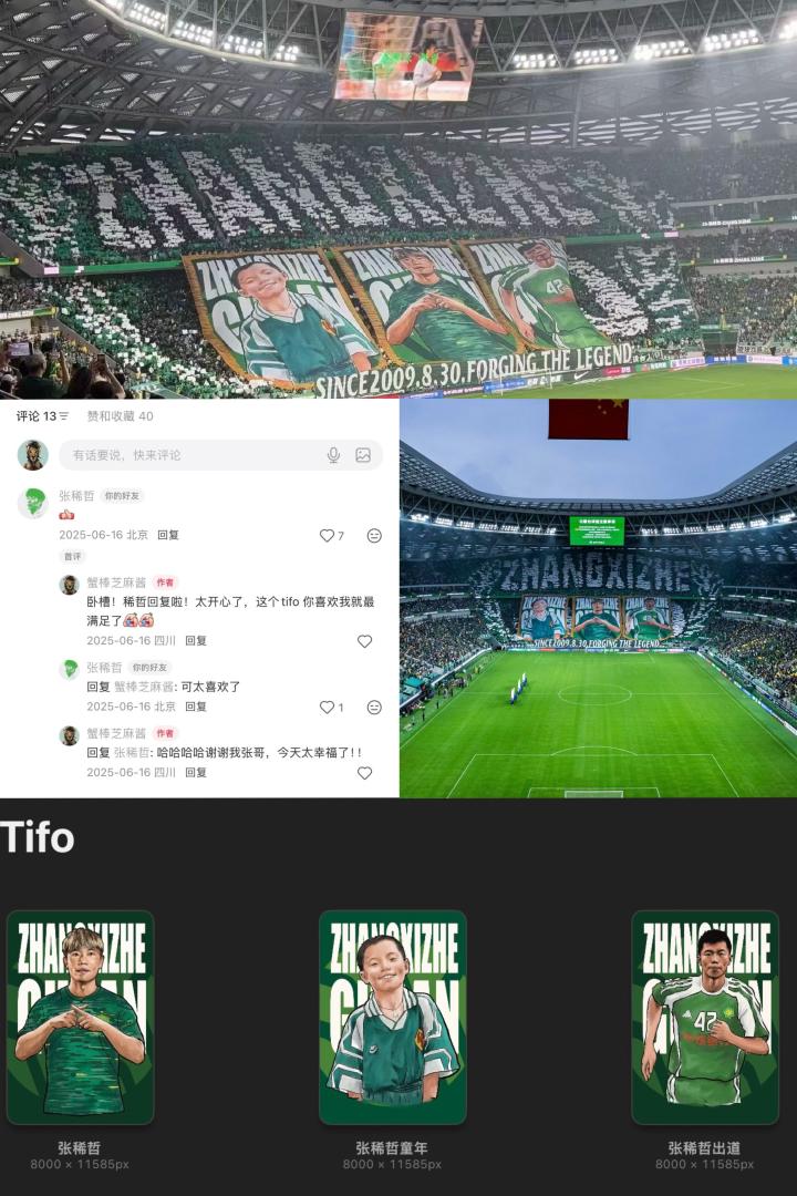 这一年,最令我骄傲和荣幸的是为北京国安传奇张稀哲绘制了400场的巨型tifo,当自己的画被制成巨大的tifo,在万千御林军的手中缓缓展开的时候,这种感觉前所未有,与有荣焉!在个人某书账号发布后,还获得了稀哲本人的关注和评论互动,算是本年度绘画的高光时刻了。