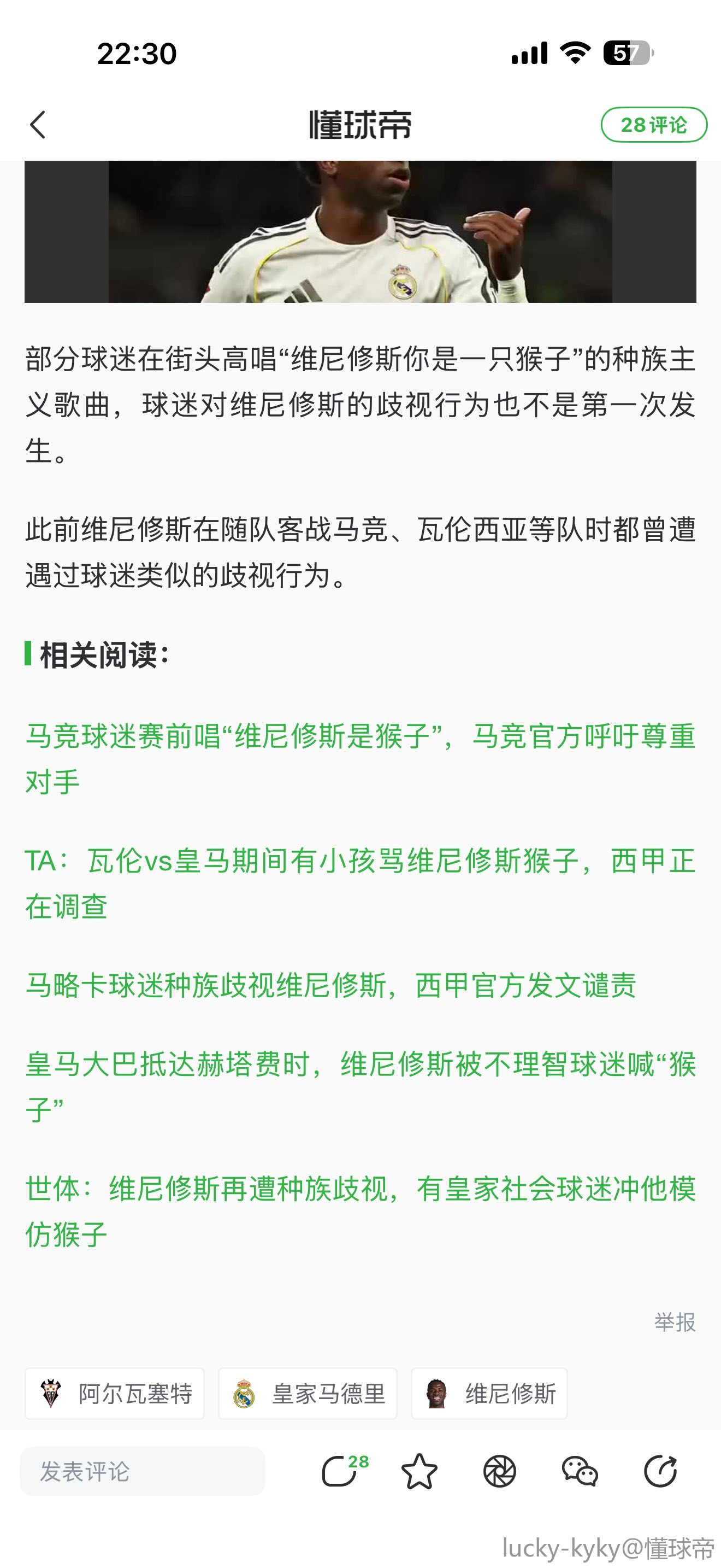 西甲谴责阿尔瓦塞特球迷种族歧视:维尼修斯,西甲与你同在