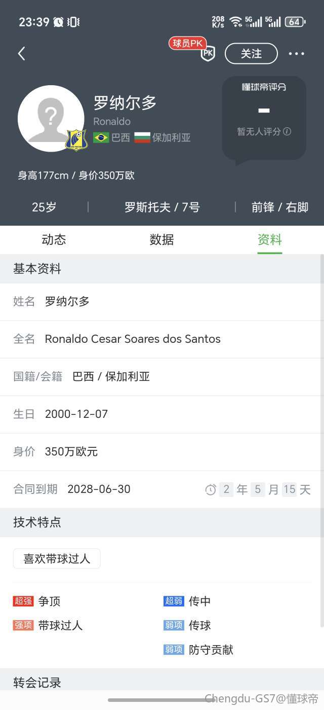 01-14 17:39喀麦隆博主:山东泰山、成都蓉城关注喀麦隆国脚中场坎代姆