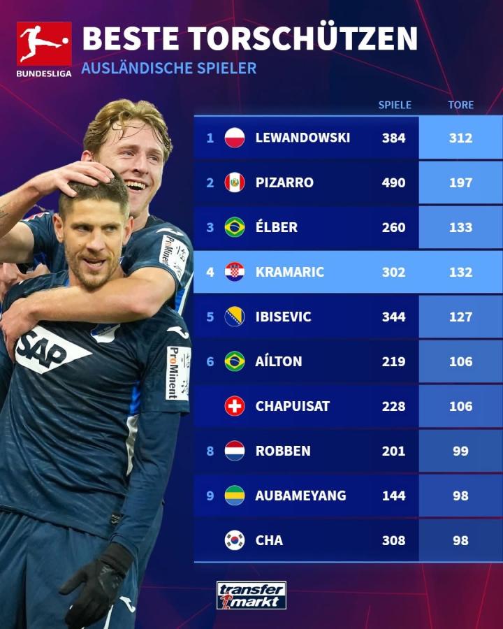 奥利塞和迪亚斯半程造40球德甲历史边锋组合第1,罗贝里仅23球