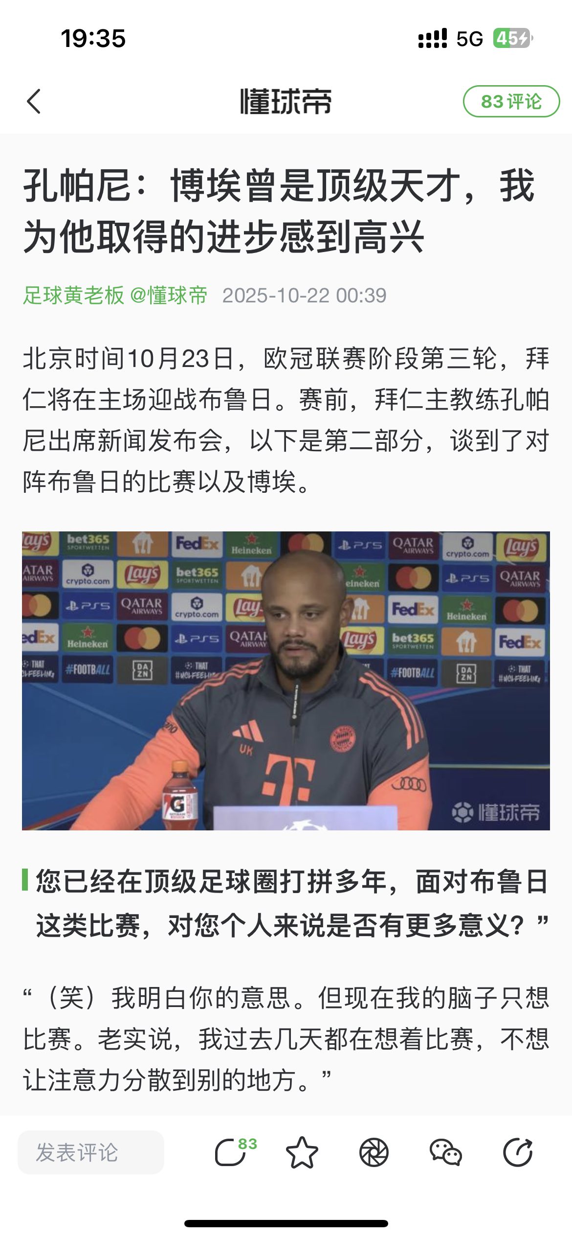 孔帕尼:基米希明天甚至可能首发,坚信穆西亚拉能走出低谷