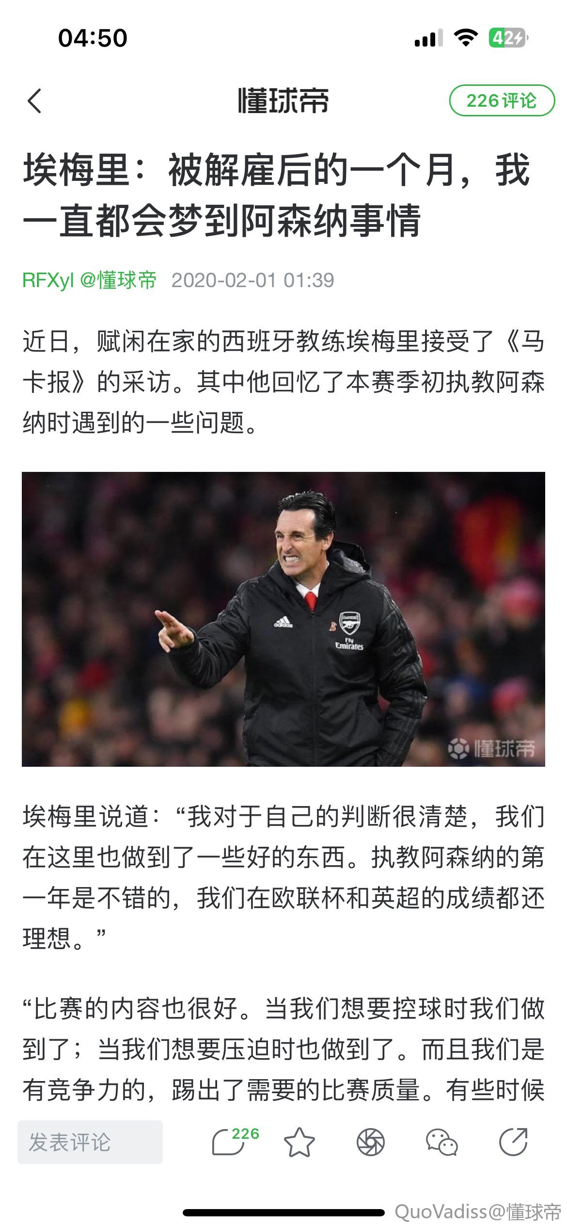 扫描下载懂球帝首页>动态> 埃梅里:执教枪手是一段美好时光,离开后我回西班牙升级技能