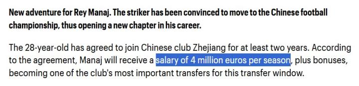 同时这里面也涵盖了一定属于马纳伊自己的薪资