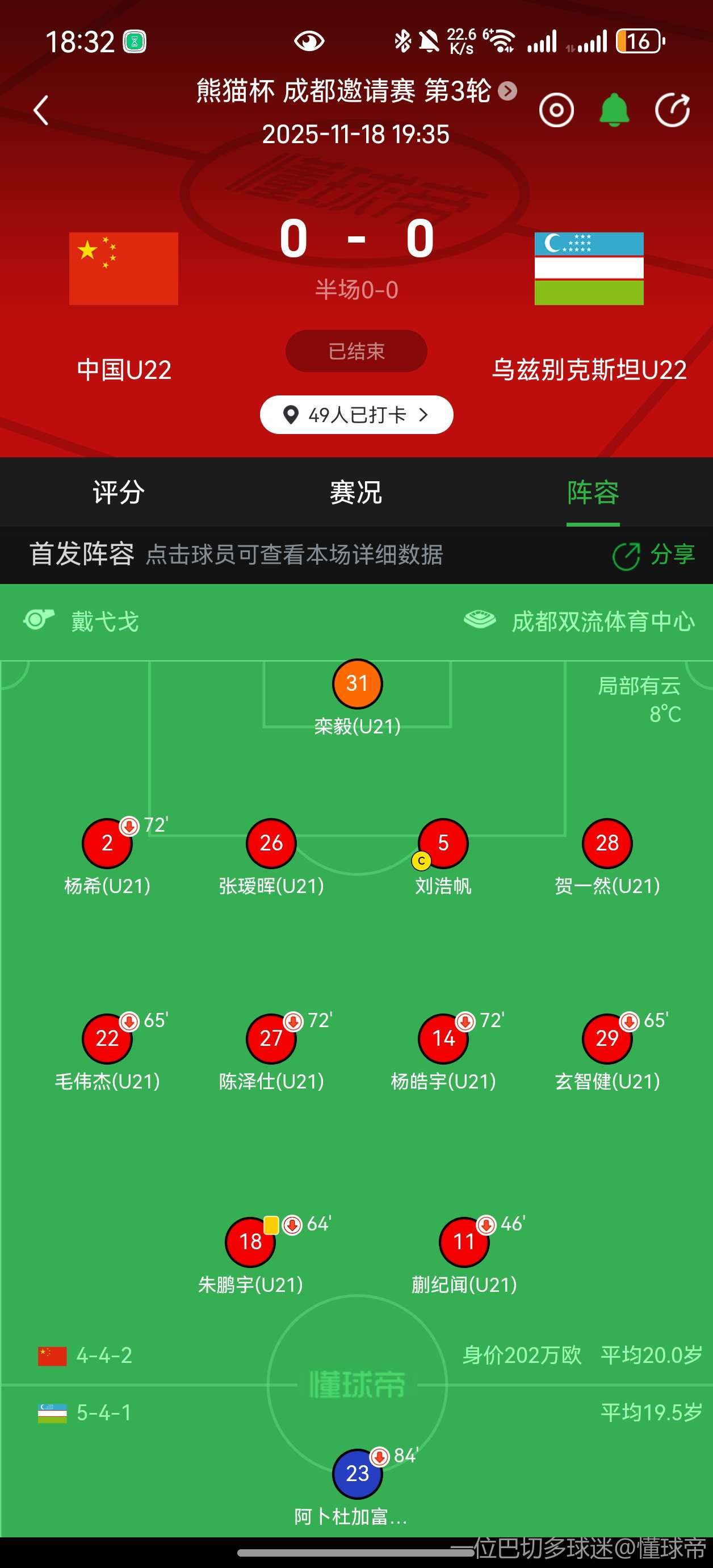 01-17 13:08U23国足战乌兹别克斯坦官方阵型:4-4-2,胡荷韬位置灵活多变