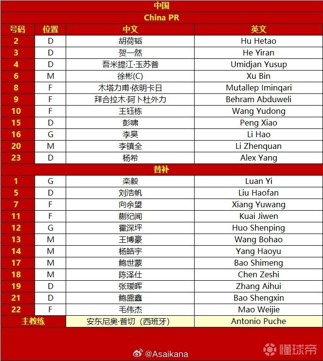 01-17 18:16U23国足本场战乌兹与熊猫杯时首发变化:仅杨希、贺一然无变动