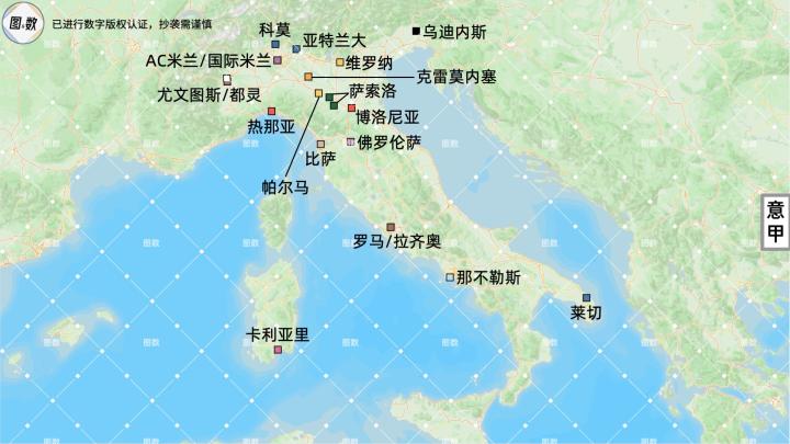 相较于球队地理分布高度失衡的意甲,意乙的区域差异虽有所缓和,却并未打破“北强南弱”的基本格局,它源自意大利形成已久的经济版图:北部地区以工商业为主,经济产值和人口密度显著高于以农业为主的南部地区,而后者在资本积累、市场规模和基础设施方面均不利于职业足球俱乐部的持续发展。
