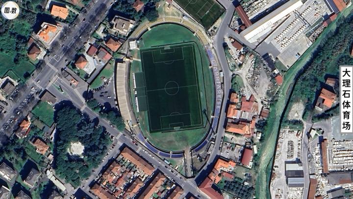 卡拉拉的主场——大理石体育场(Stadio dei Marmi, 可容纳5500人),是容量最小的意乙赛场,它并非使用大理石建造,“大理石”之名是为了致敬当地的特产——卡拉拉大理石(Carrara marble),这种白色石材从古罗马至今,已经连续采掘2000多年,文艺复兴时期的标志性艺术品——大卫雕像,就是米开朗琪罗利用卡拉拉大理石制成的杰作。