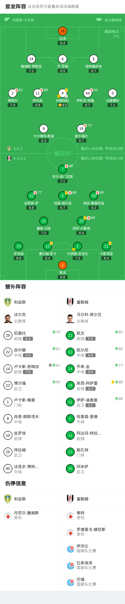 第90+1分钟,恩梅加倒地情况下扫射破门,利兹联1-0富勒姆