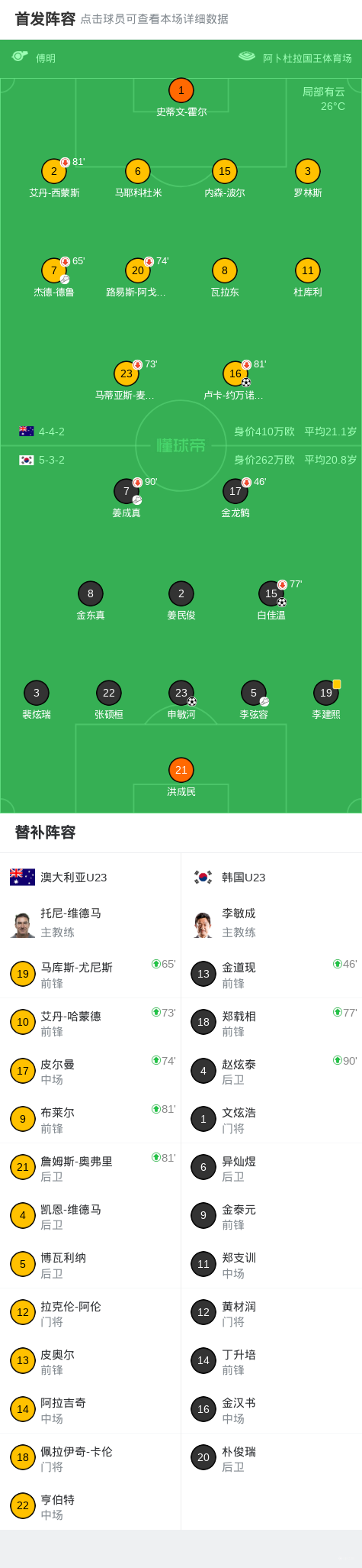 第52分钟,卢卡-约万诺维奇破门,澳大利亚U23扳平比分!