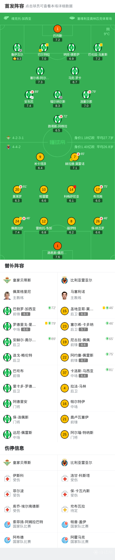 01-18 07:39皇家贝蒂斯vs比利亚雷亚尔:安东尼、洛塞尔索首发,赫拉德-莫雷诺、帕雷霍出战