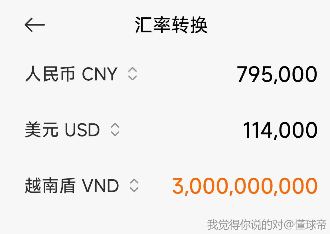 我以为30亿越南盾有多少呢,29个人分80万人民币,合着一个人不到三万,王钰栋李昊赛后开个直播收礼物都不止这些钱