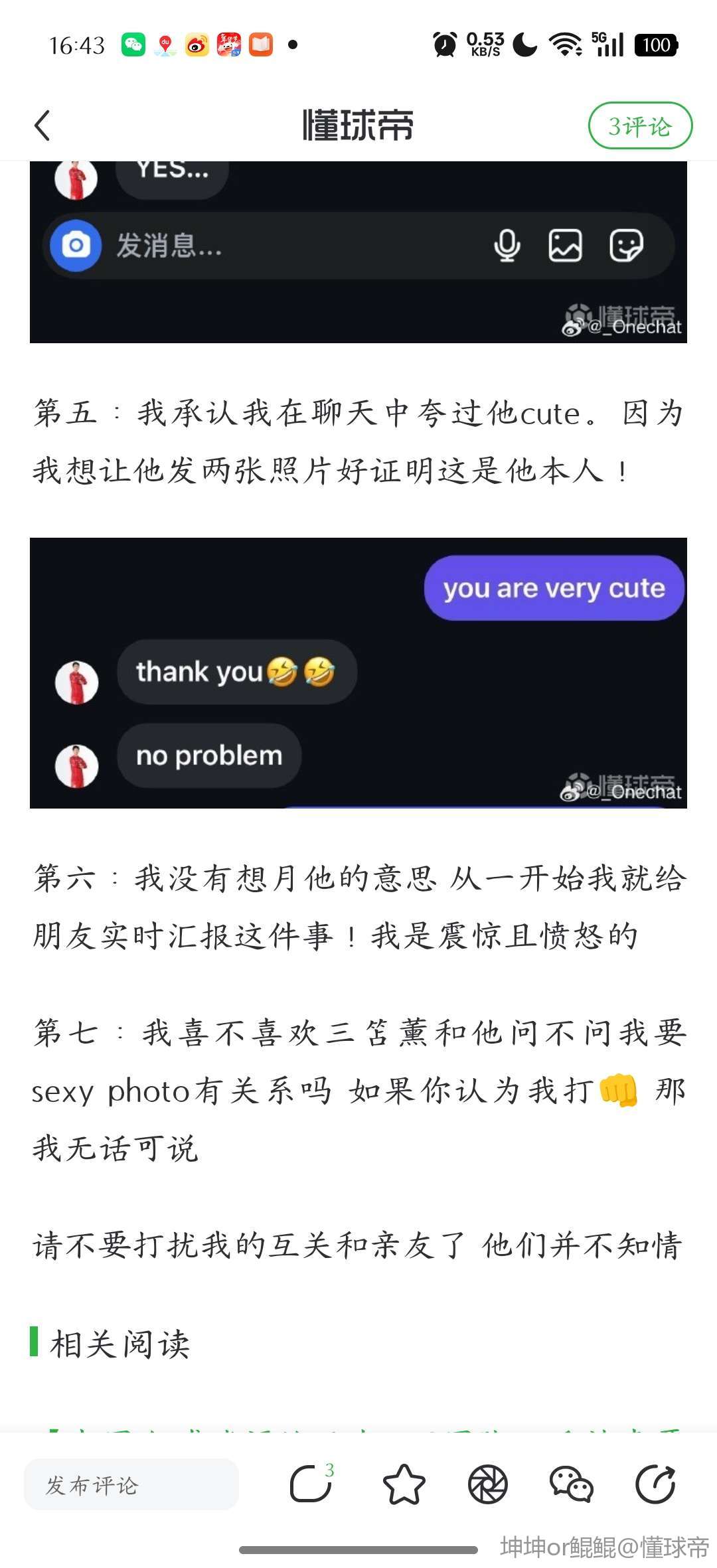 第二:我没有私信他!ins的快拍评论是主动发到私信的关于夸他“帅的”这件事 我的意思是“他昨天的表现特别好很帅!”我给早川都发过“帅!”这男的并不是我喜欢的类型
