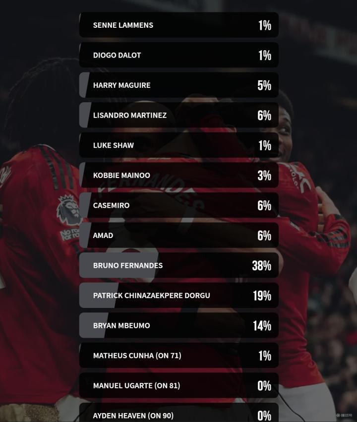 扫描下载懂球帝首页>动态> 力压多古、姆伯莫,B费当选曼市德比一役曼联队内最佳