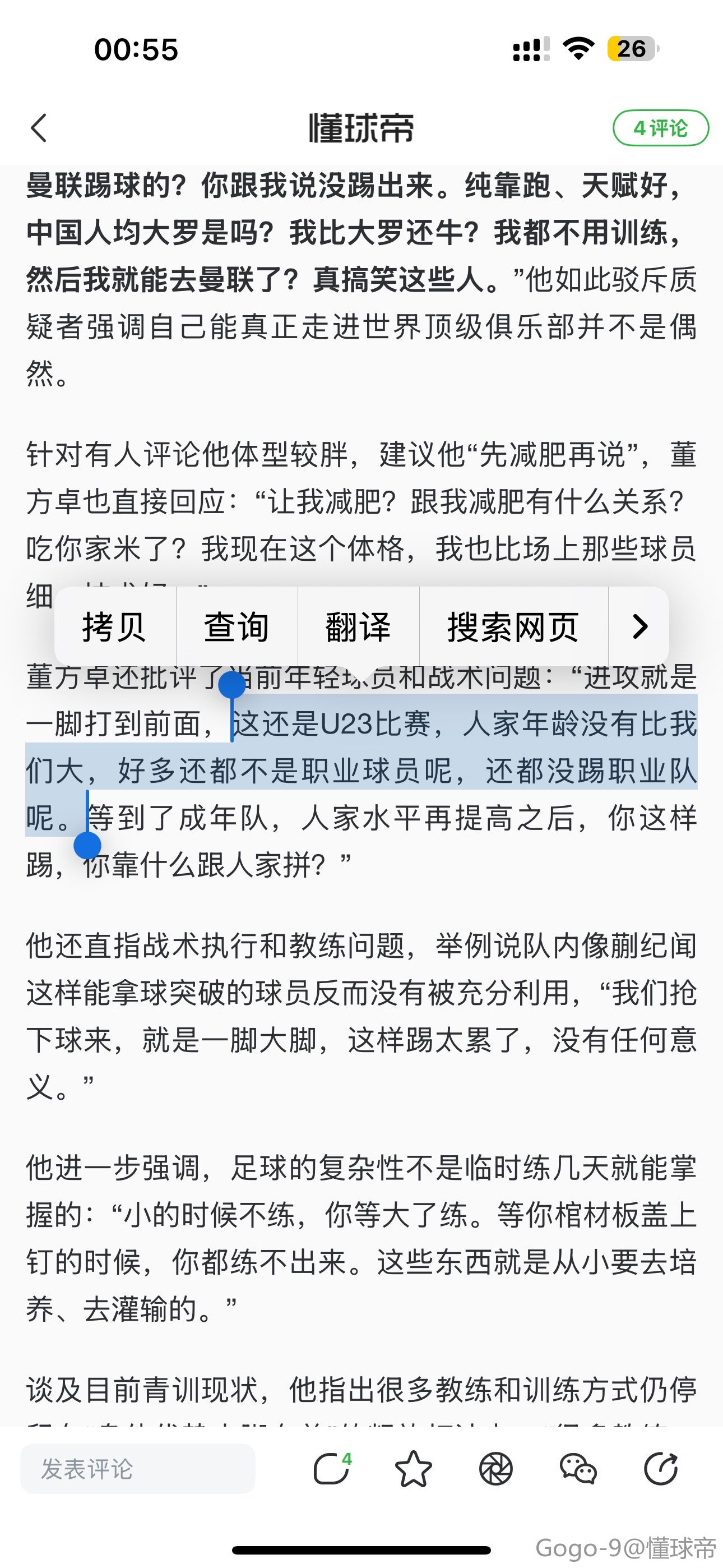 扫描下载懂球帝首页>动态> 董方卓怼网友:我没踢出来?全亚洲有几个去曼联踢球的?
